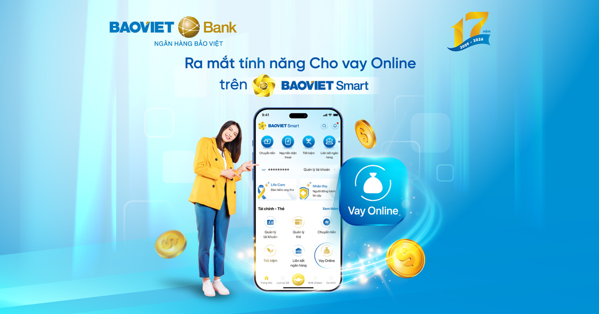 BAOVIET Bank chính thức ra mắt tính năng Cho vay Online cầm cố tiền gửi tiết kiệm EZ-Saving trên ứng dụng BAOVIET Smart, giúp khách hàng dễ dàng tiếp cận nguồn vốn mà vẫn duy trì lợi ích từ khoản tiết kiệm hiện có.