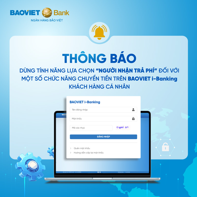 Theo đó, để tuân thủ quy định của Chính phủ về hóa đơn, kể từ ngày 06/11/2025 BAOVIET Bank sẽ dừng tính năng lựa chọn “người nhận trả phí” đối với một số chức năng chuyển tiền trên BAOVIET i-Banking dành cho Khách hàng cá nhân. Phí giao dịch sẽ được mặc định do người chuyển thanh toán.