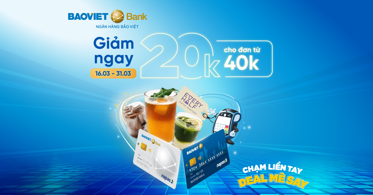 Để mang đến trải nghiệm mua sắm thông minh và tiện lợi hơn, BAOVIET Bank, Mastercard, NAPAS, Payoo và Every Half Coffee hợp tác ra mắt ưu đãi đặc quyền dành riêng cho người dùng khi sử dụng phương thức thanh toán chạm (contactless).