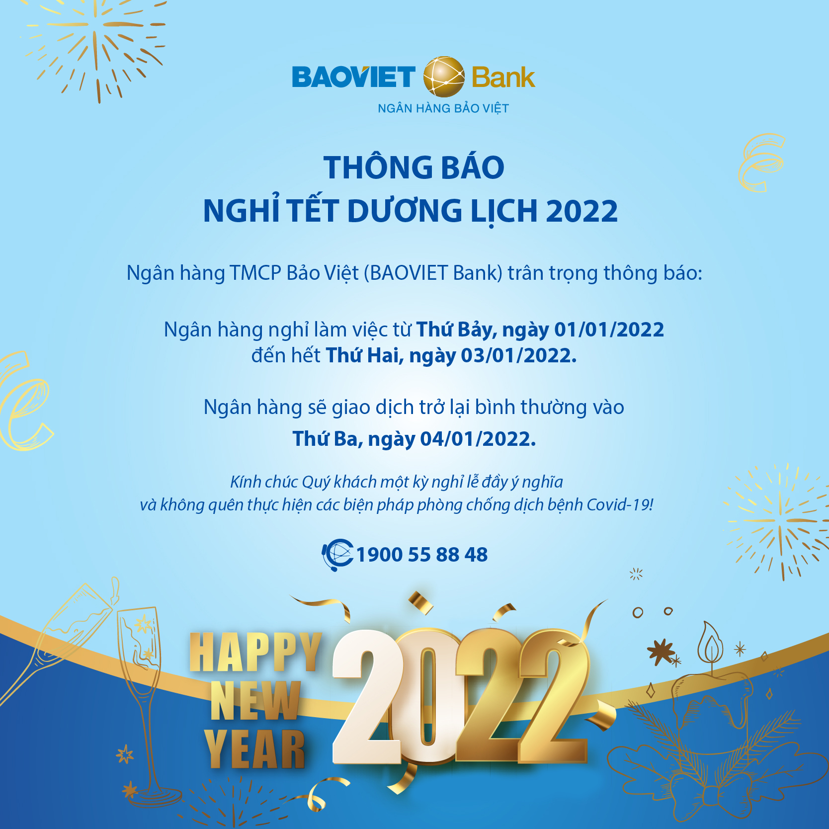 BAOVIET Bank kính chúc Quý khách hàng kỳ nghỉ lễ vui vẻ, ý nghĩa và không quên thực hiện các biện pháp phòng chống dịch Covid-19!