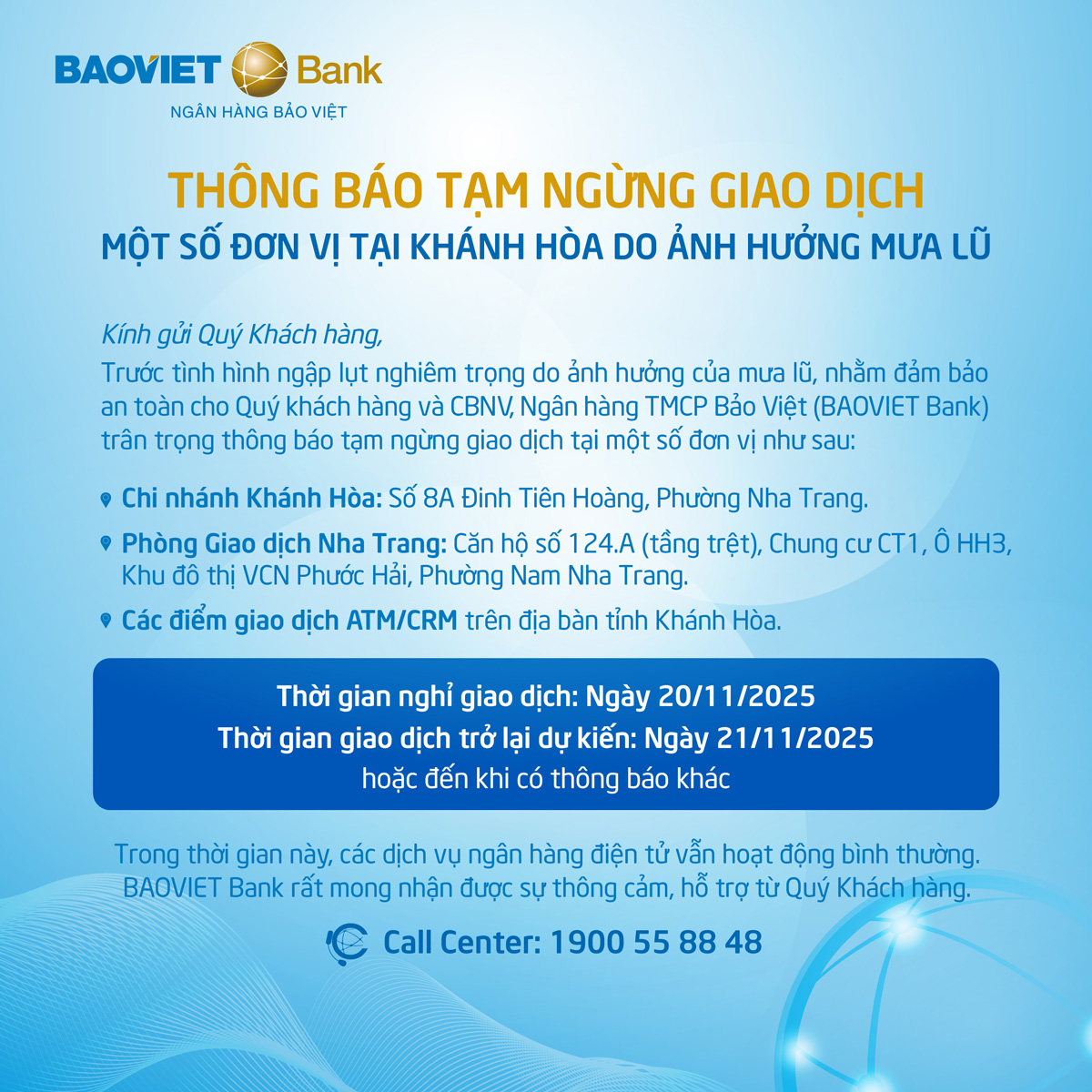 *Thời gian giao dịch trở lại dự kiến: Ngày 21/11/2025 hoặc đến khi có thông báo khác.