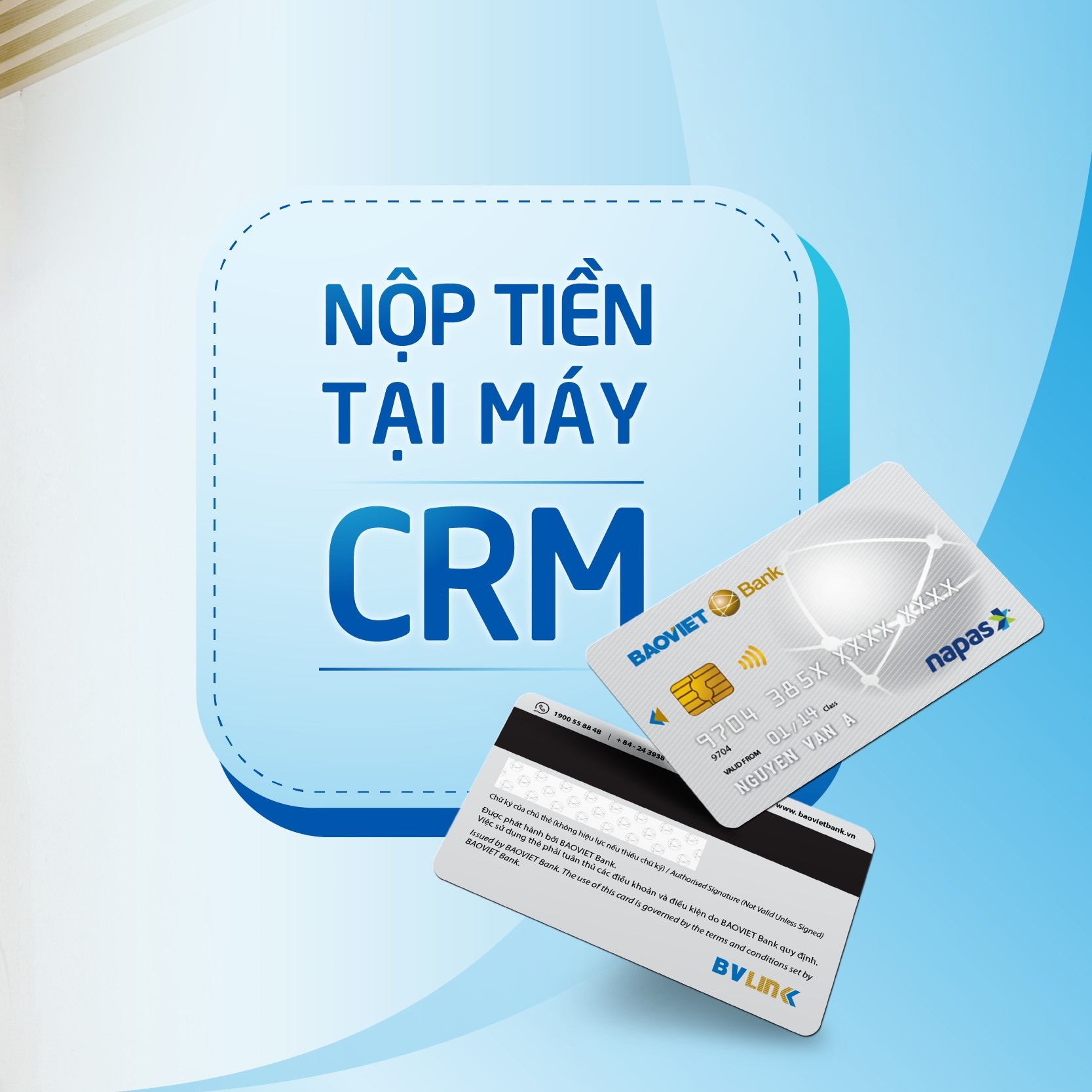 Tại BAOVIET Bank, nộp tiền tại máy CRM bao gồm các bước cơ bản sau: