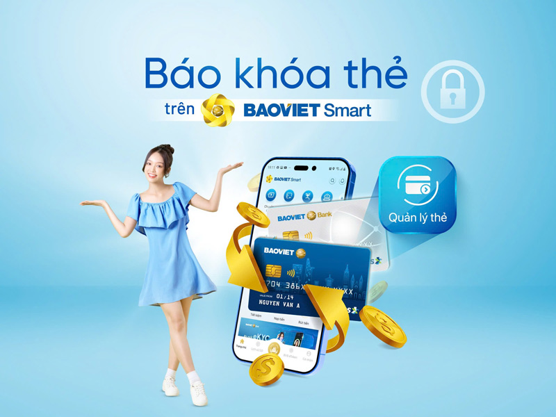 Chỉ với một chiếc điện thoại thông minh có kết nối Internet, khách hàng có thể thực hiện khóa thẻ mọi lúc mọi nơi với vài bước chạm đơn giản. Dưới đây là ví dụ về các bước khóa thẻ tín dụng trên BAOVIET Smart - ứng dụng ngân hàng số của BAOVIET Bank: