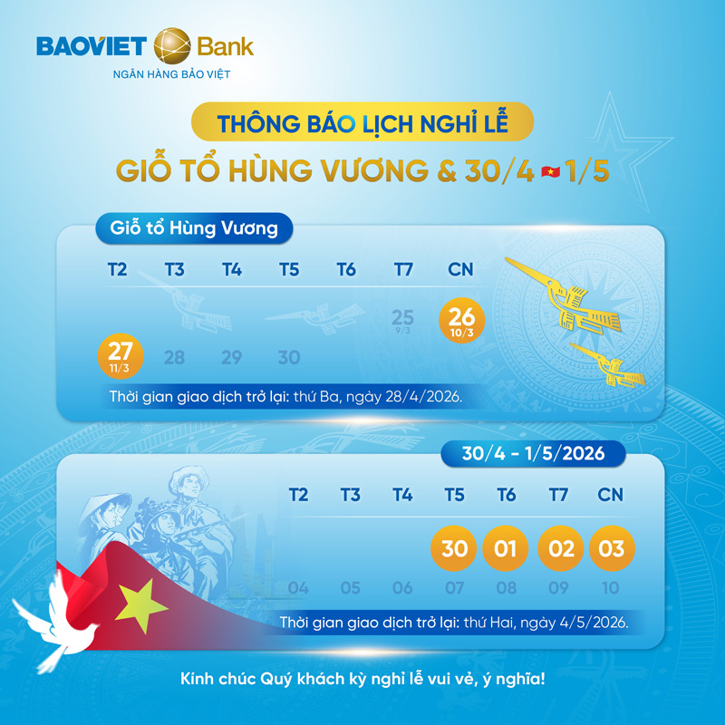 Trong thời gian nghỉ lễ, các dịch vụ ngân hàng điện tử và hệ thống ATM/CRM vẫn hoạt động bình thường.