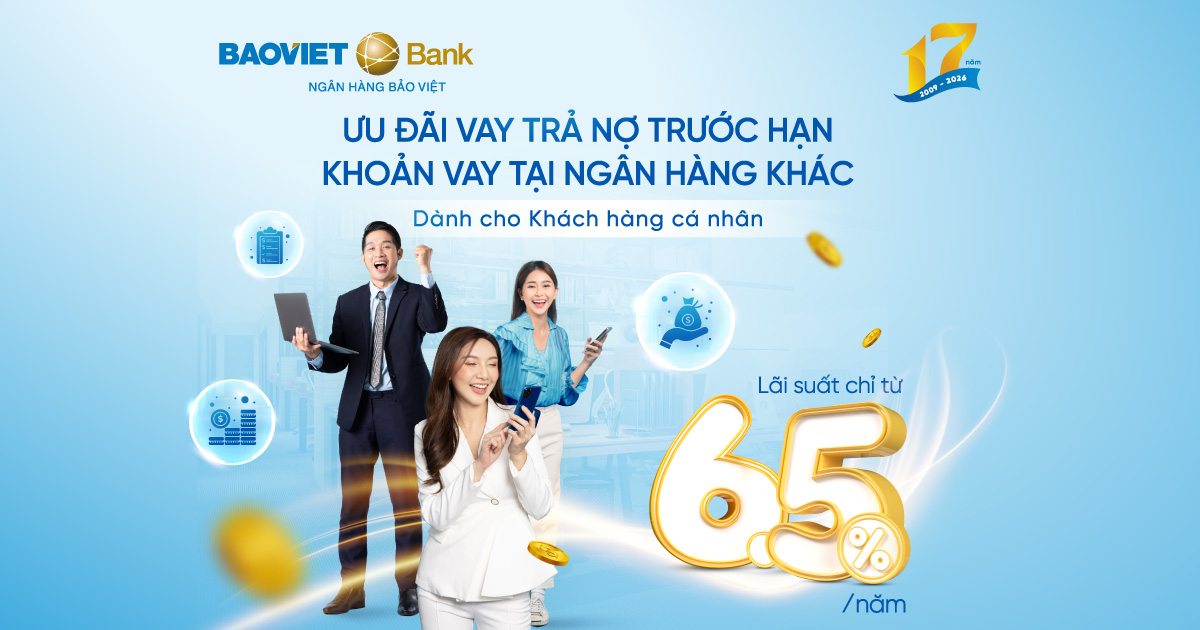 Kỷ niệm 17 năm thành lập (14/01/2009 – 14/01/2026), BAOVIET Bank triển khai chuỗi chương trình đặc biệt "Dấu ấn sinh nhật - Ưu đãi rộn ràng" tri ân hàng triệu Quý khách hàng.