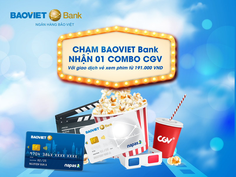 Theo đó từ 17/10 – 15/12/2025, tặng một CGV Combo bắp nước cho giao dịch mua vé từ 191.000 VNĐ khi khách hàng thanh toán trực tiếp bằng thẻ ghi nợ nội địa hoặc tín dụng nội địa BAOVIET Bank trên máy quẹt thẻ (POS) tại quầy CGV.